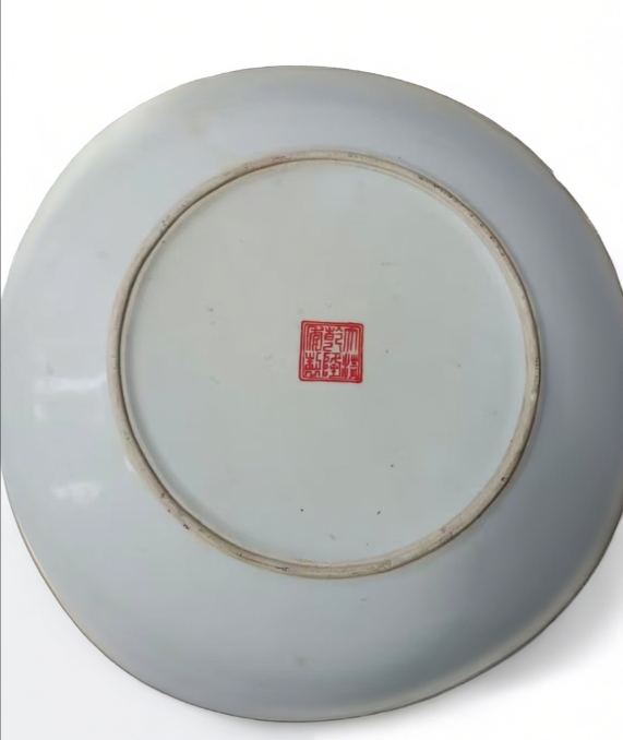 款识内容是 “窑口或工匠名”,不是 “年号款”—— 民国的民窑瓷,多是 “无款或简款”,这只盘的红款,已是 “比较讲究的民用器”。