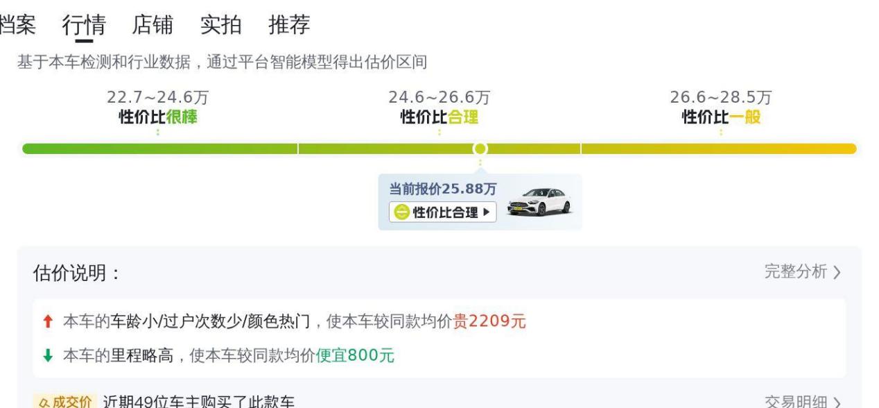 根据一些二手车平台的数据,同款车型,类似车况的二手奔驰C260L,价格普遍在26万到28万之间。这辆车的报价25.88万,虽然略低于市场平均价,但也并非特别离谱。考虑到没有检测报告带来的风险,这个价格并不算特别有吸引力。