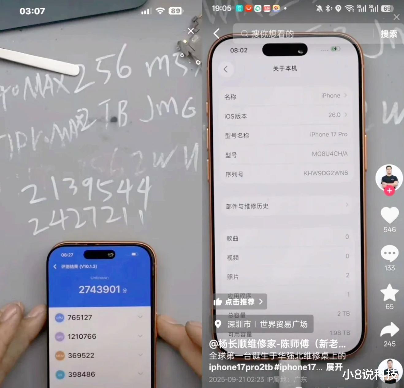 但最后扩容成功,成了全球首台2TB的iPhone17 Pro。