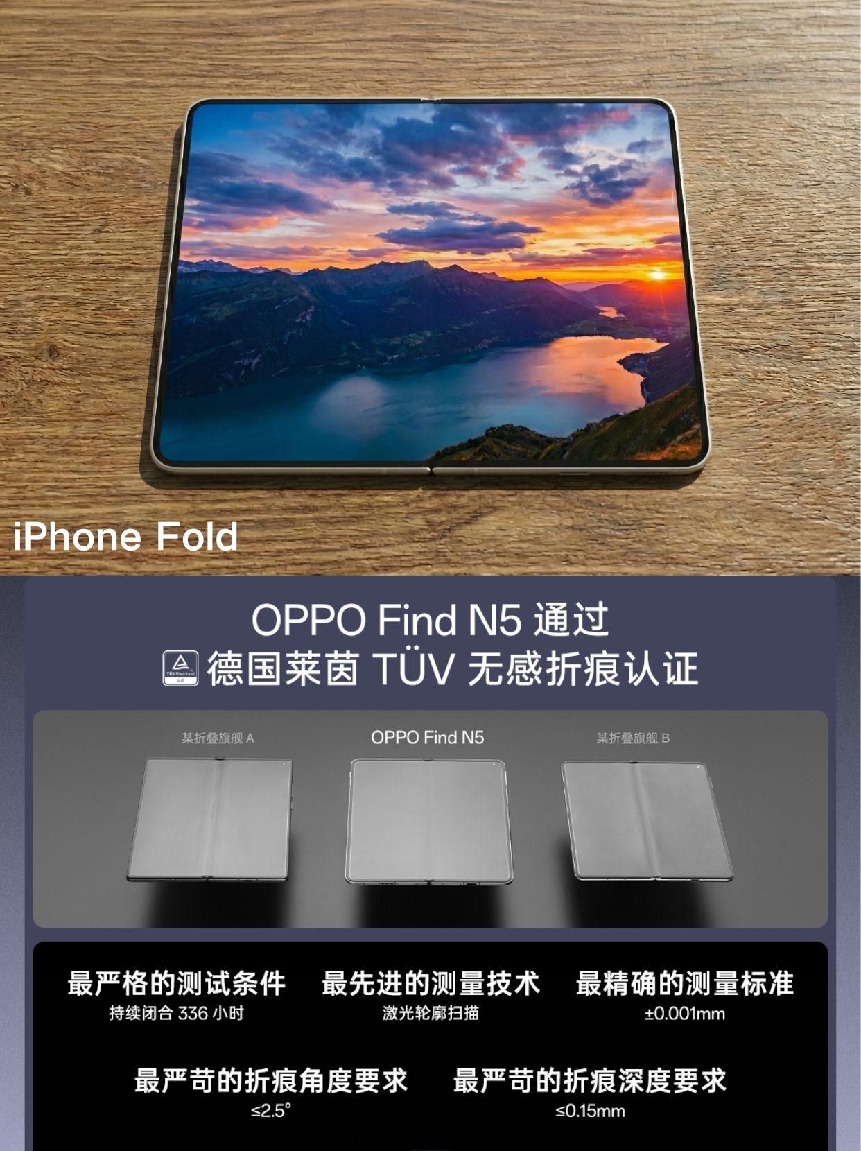 不过网上有消息说OPPO Find N6会抢跑新技术,率先做到无折痕,参考OPPO Find N5的折痕就已经做到很浅,还获得了无感折痕认证,所以这个消息真实度应该还是挺高的。