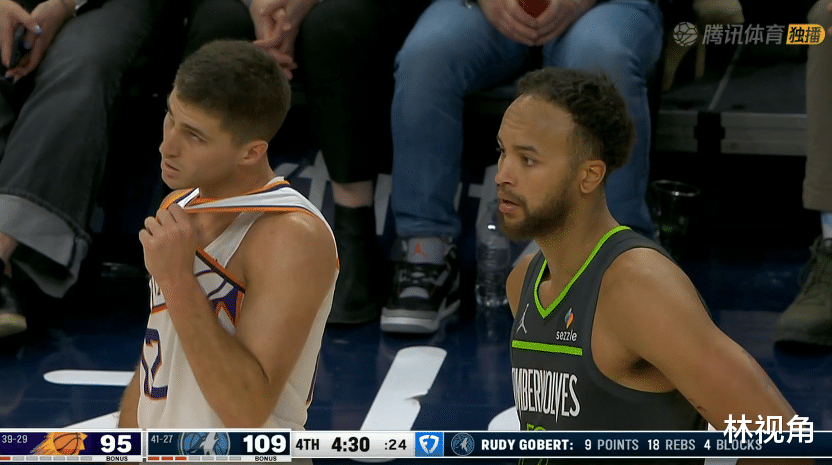 格林在开局命中两记三分后,便彻底陷入“得分荒”。他多次选择强攻内线,却屡屡遭遇戈贝尔与麦克丹尼尔斯的“火锅大帽”,进攻选择的盲目与低效,让太阳的进攻体系陷入停滞。