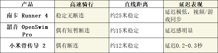 蓝牙小结:南卡Runner 4延迟最低、连接最稳,尤其适合对同步性要求高的运动和游戏场景。