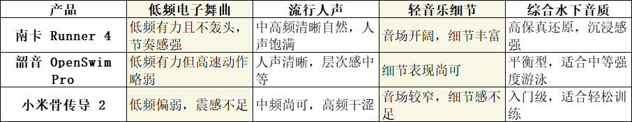 音质小结:南卡Runner 4在三款中音质最接近传统高品质耳机,适合对音乐细节有较高要求的用户。