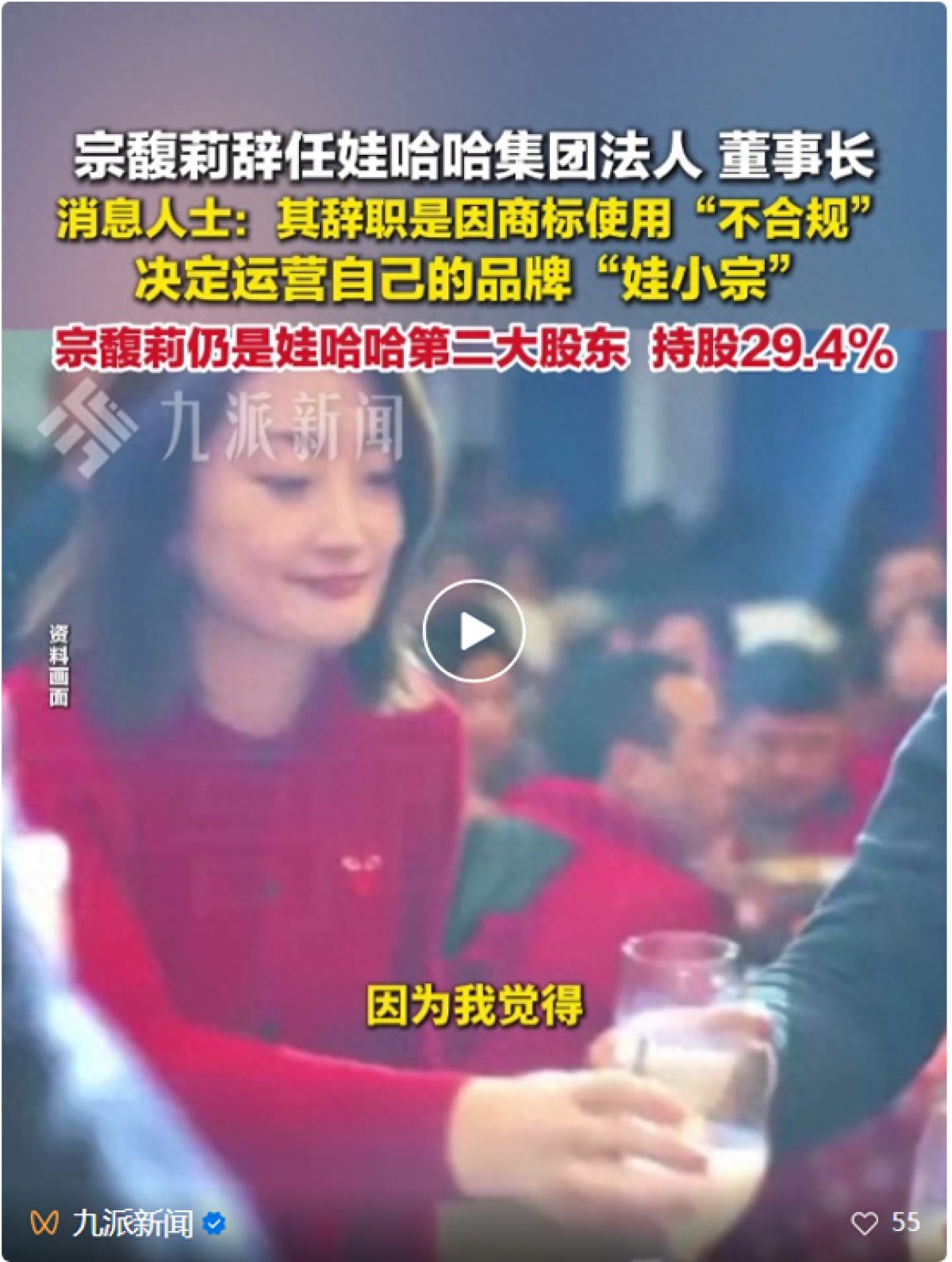 近日,宗馥莉辞去娃哈哈集团董事长等相关职务一事引发热议。有消息称,宗馥莉此次辞职,是决定经营自己的品牌“娃小宗”。