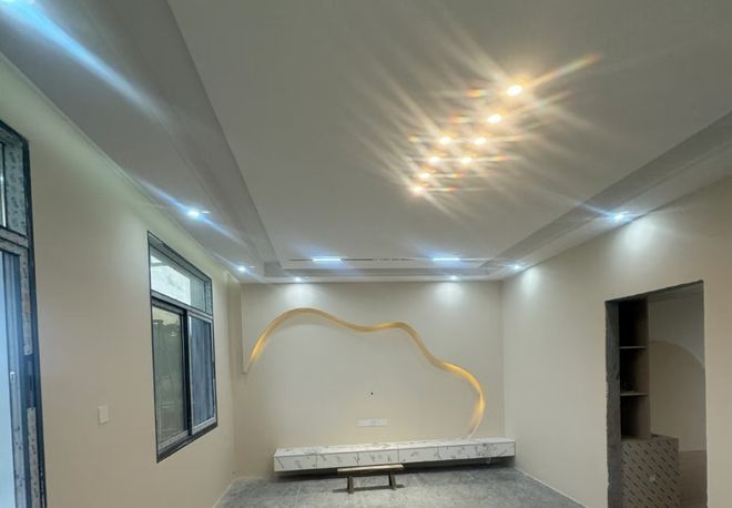 这是由于无主灯设计没做好,天花板上装了密密麻麻一堆灯,打开后像星空顶。真的没有氛围感,还让人觉得压抑。