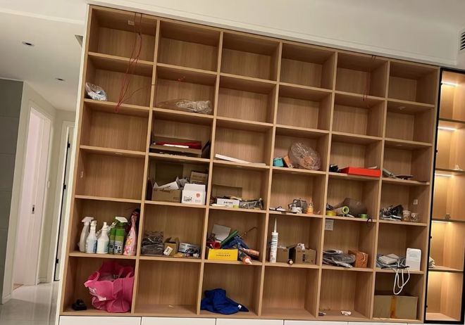 装修前做足了功课,看别人做的开放式规格,摆满饰品,立马就被吸引了。但是,往往想的是展示与通透,而现实却是杂乱无序。