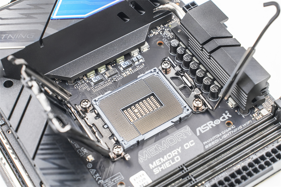 主板是华擎的PHANTOM GAMING B860I Lightning WiFi,标准的ITX规格,采用10+1+1相供电设计,