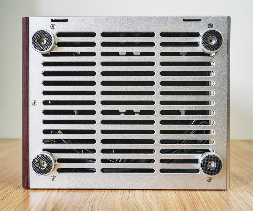 电源位下方是面积巨大的底部网孔,四角均有支撑脚设计,还有防滑垫加持。