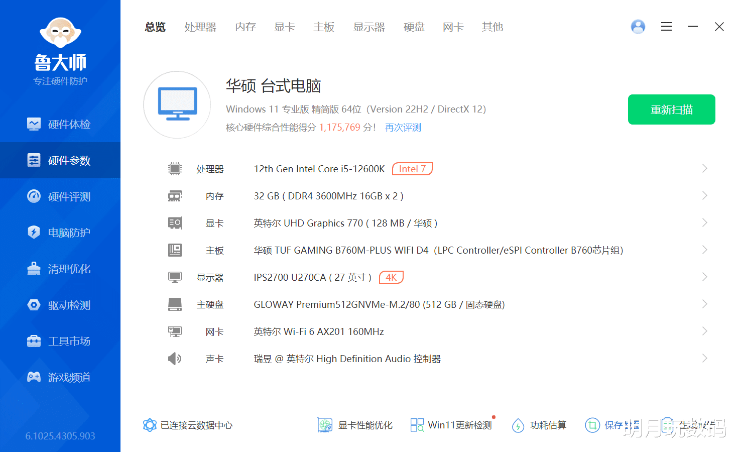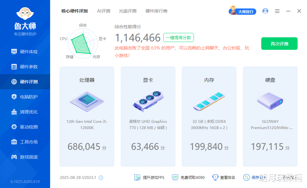 我的电脑配置并不高,处理器为I5-12600K,使用的是板载显卡。不过,我搭配的主板是华硕重炮手TUF GAMING B760M主板,可以完美发挥酷芯客DDR4内存条的强劲性能。