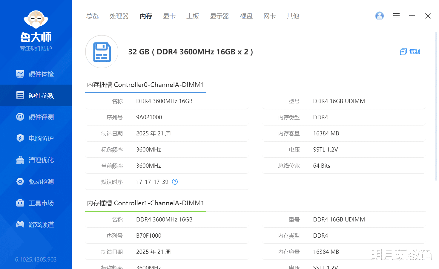 首先,我们来看一下内存条的参数。我先用的是32G(16GB*2)的套装产品,它的运行频率是3600MHz,采用了海力士CJR颗粒,时序CL18,硬件的性能还是很出色的。另外,酷芯客的内存条可是终身质保,品质方面可以终身无忧。