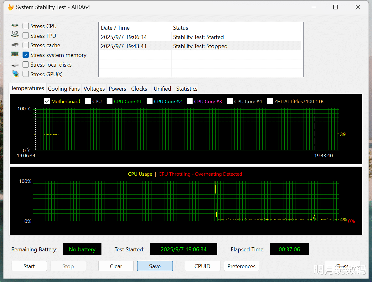 当然,一款优秀的内存条不仅要有出色的超频性能,还要具备良好的稳定性。为了测试酷芯客DDR4内存条的稳定性,在超频到4000MHZ我们进行了长时间的拷机测试。在连续运行数小时的高强度测试过程中,内存条始终保持着稳定的工作状态,没有出现任何死机、蓝屏等异常情况。这得益于其优质的内存颗粒和精湛的制造工艺,能够保证在高频率、高负载的情况下依然稳定运行。即便超频至4000MHz,温度仍能控制在40℃以下,远低于同价位竞品。这种扎实的稳定性,着实可以让用户放心使用。