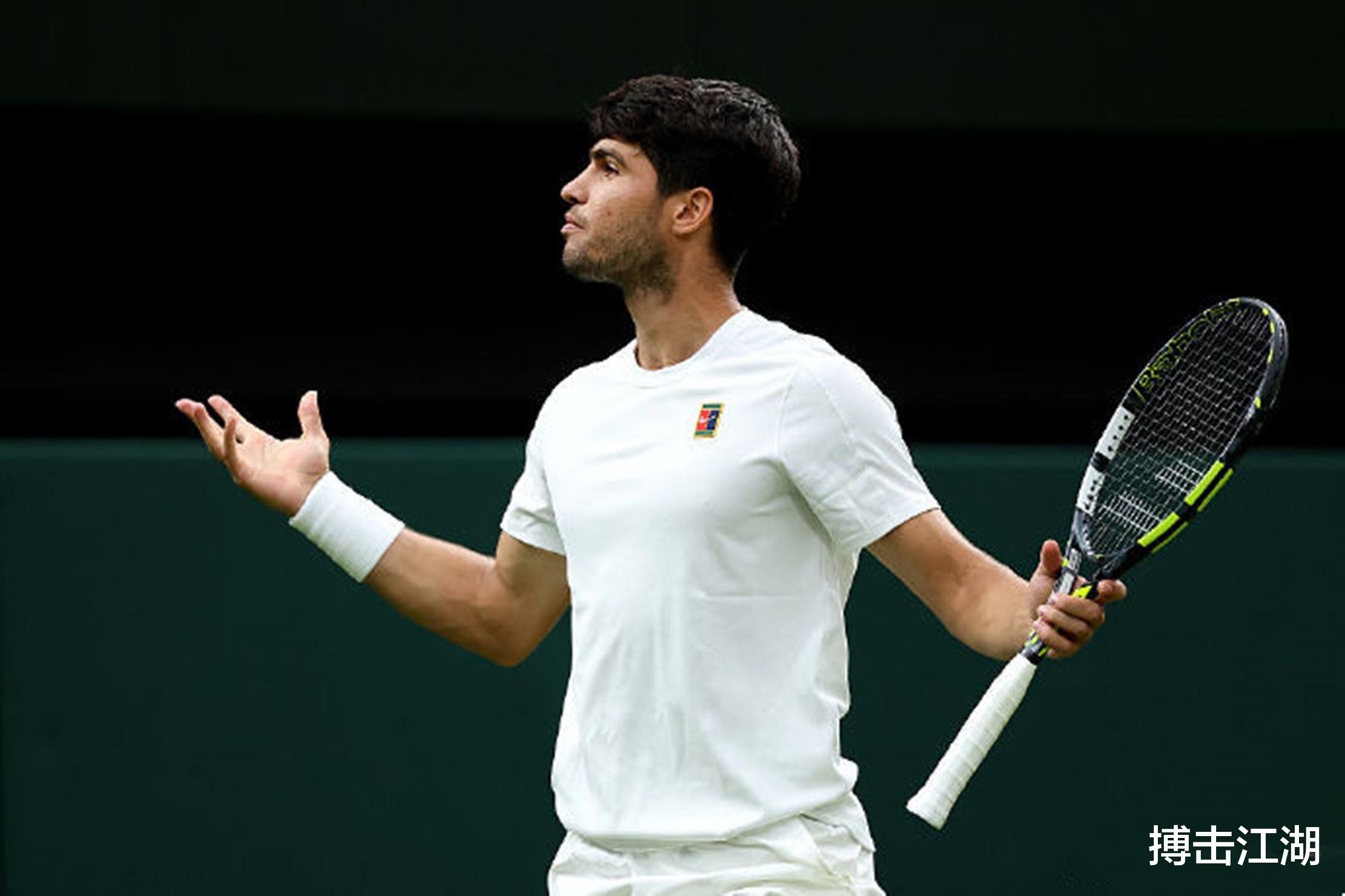 【文/搏击江湖】北京时间7月7日凌晨,万众瞩目的2025年温网男单第4轮上演一场焦点大战,两届赛会卫冕冠军阿尔卡拉兹在先输一盘的情况下完成逆战,苦战4盘以6(5)-7、6-3、6-4、6-4逆转俄罗斯著名球员卢布列夫,连续3年晋级赛会8强、第12次跻身大满贯8强,接下来他将与英国名将诺里争夺4强席位!