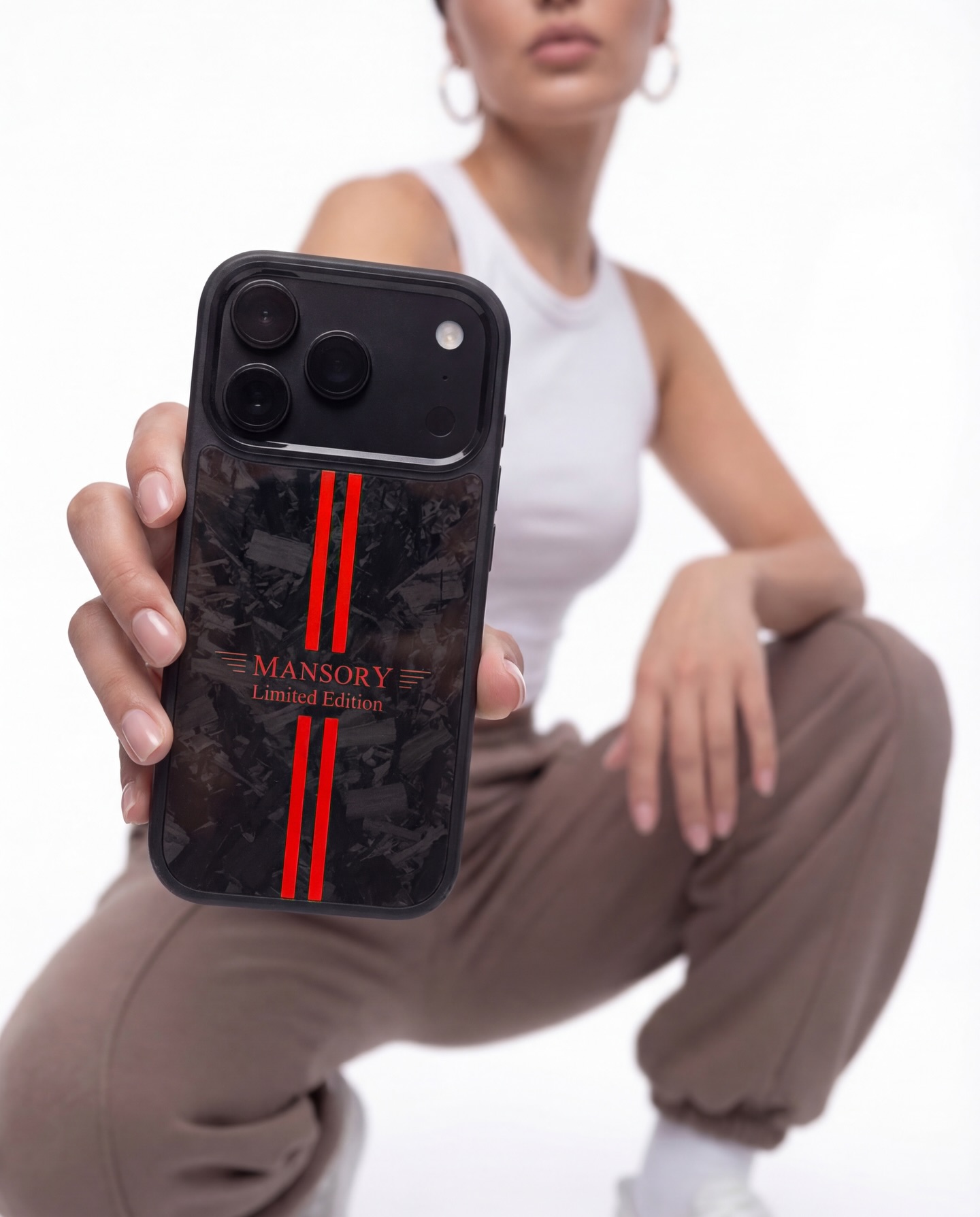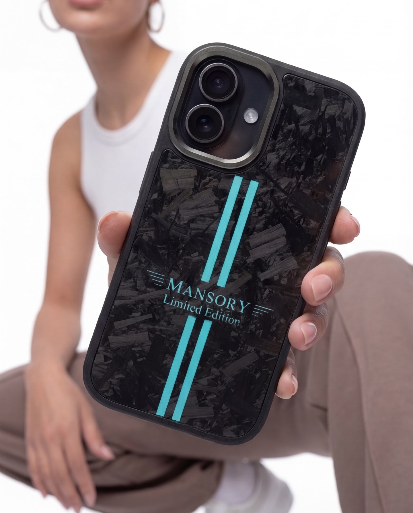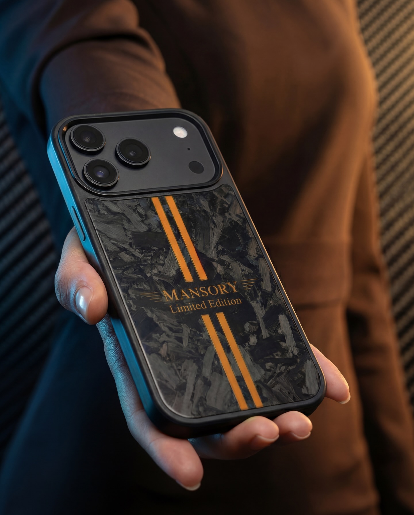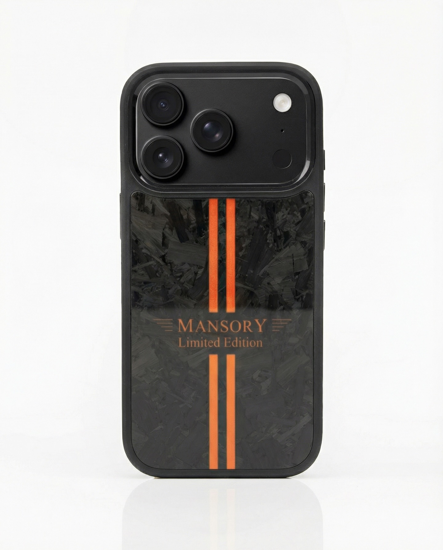 The MANSORY iPhone Case features a durable plastic frame for everyday protection and a genuine carbon fiber back, each with a unique pattern and color. Designed with MANSORY’s signature styling and Limited Edition branding, it offers a slim fit, precise cutouts, and a premium feel without adding bulk.MANSORY iPhone 手机壳采用耐用的塑料框架,提供日常防护,并配有真碳纤维背板,每一款的纹理和色彩都是独特的。它融入了MANSORY标志性的设计风格和限量版标识,纤薄贴合,开孔精准,质感高级,却不显笨重。