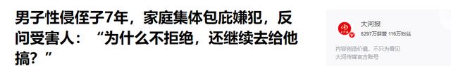 大河报-男子性侵侄子7年,家庭集体包庇嫌犯,反问受害人:“为什么不拒绝,还继续去给他搞?”