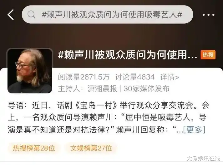 时间回到2025年的8月13号,北京世纪剧院举办了赖声川导演的话剧《宝岛一村》的交流会,有观众提问“央视曾经报导过屈中恒XD,您作为导演是装不知道,还是在对抗中国法律?”赖声川听完大脑当场宕机,沉默数秒后憋出了句话“这个问题没什么好谈的”,随后匆匆结束了交流活动。他在离场前,还怒气冲冲地多次指向这名观众,这件事很快就登上了热搜。