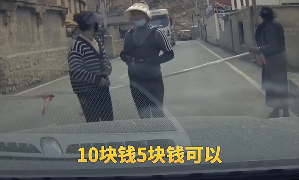 游客停车后,几个村民上前开口就直接要钱,还给自己找了个理由,称三八妇女节了,让游客给他们发个红包。