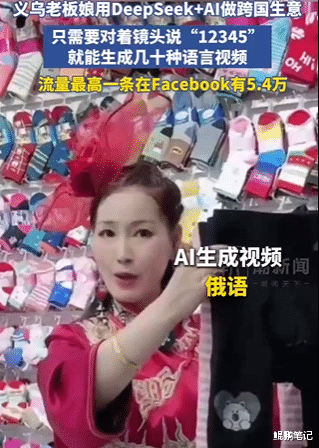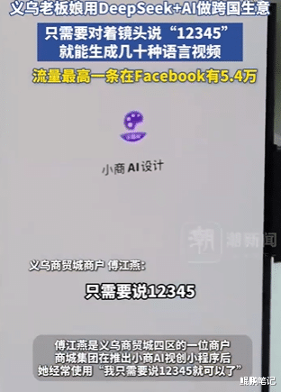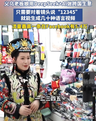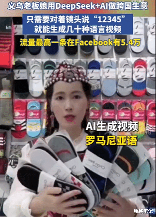 老板娘傅江燕只需对着镜头念“一二三四五”,AI自动生成英语、阿拉伯语等多语种产品视频,配上DeepSeek撰写的本土化文案,10分钟发到Facebook,流量直接爆到5.4万!连非洲小客户都留言“How to buy?”。