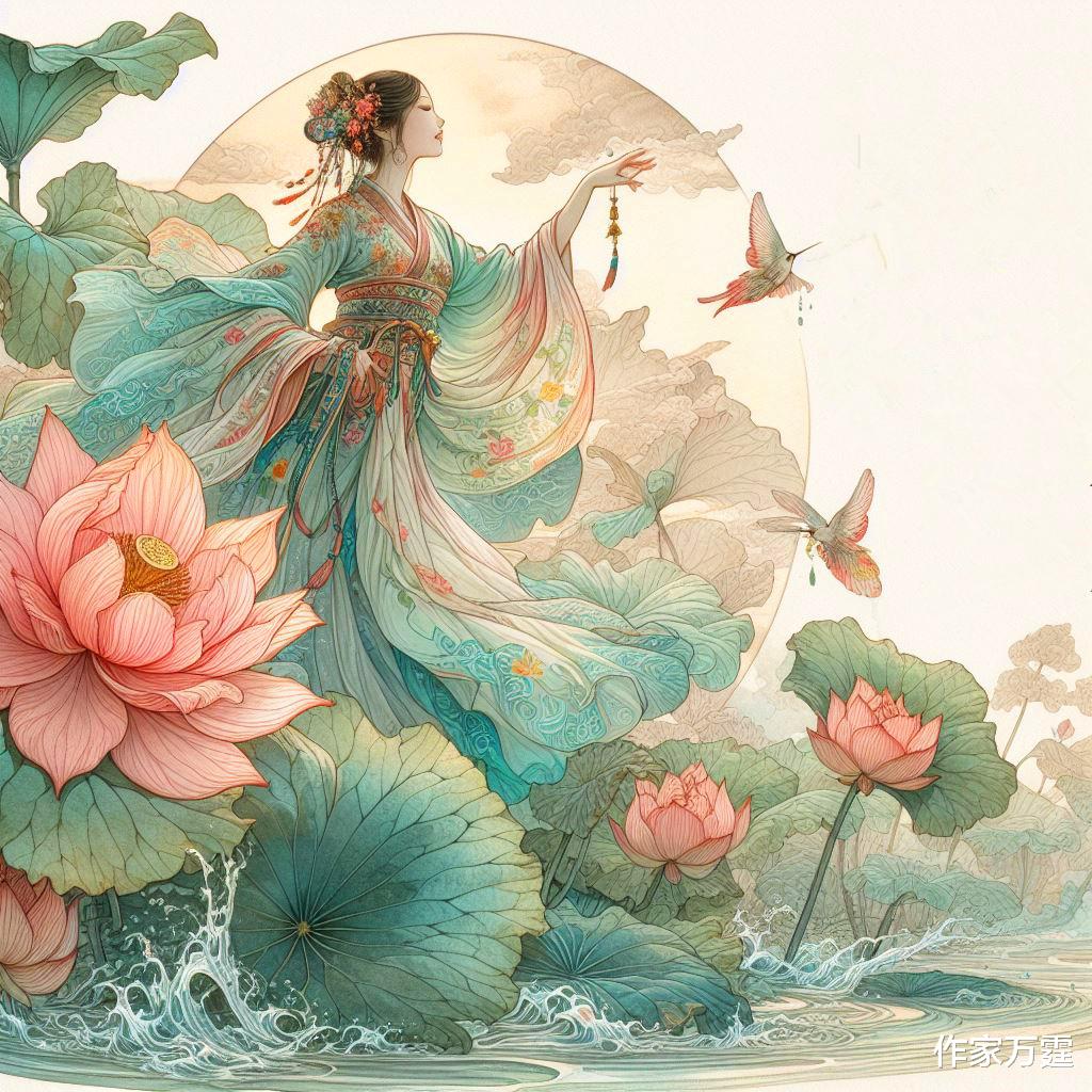 仙女在这清丽的水景环绕下,留连忘返。她在舞动间,宛如水中的精灵,与自然相融合,彰显出无尽的优雅与宁静。一切如此纯净,仿佛步入仙境。