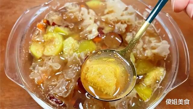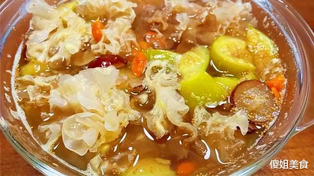 煮好的无花果银耳羹看起来就特别诱人,银耳晶莹剔透,无花果粉粉嫩嫩,枸杞红艳艳的,整锅汤都是暖暖的色调,看着就觉得很幸福。趁热舀上一碗,无花果的香甜和银耳的软糯完美结合,每一口都是满足,放凉了喝也很不错,口感更加清爽,甜而不腻,真的是秋天里不可错过的美味。