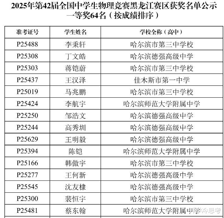二、2025年黑龙江物理奥赛省队入选名单来源高中分析