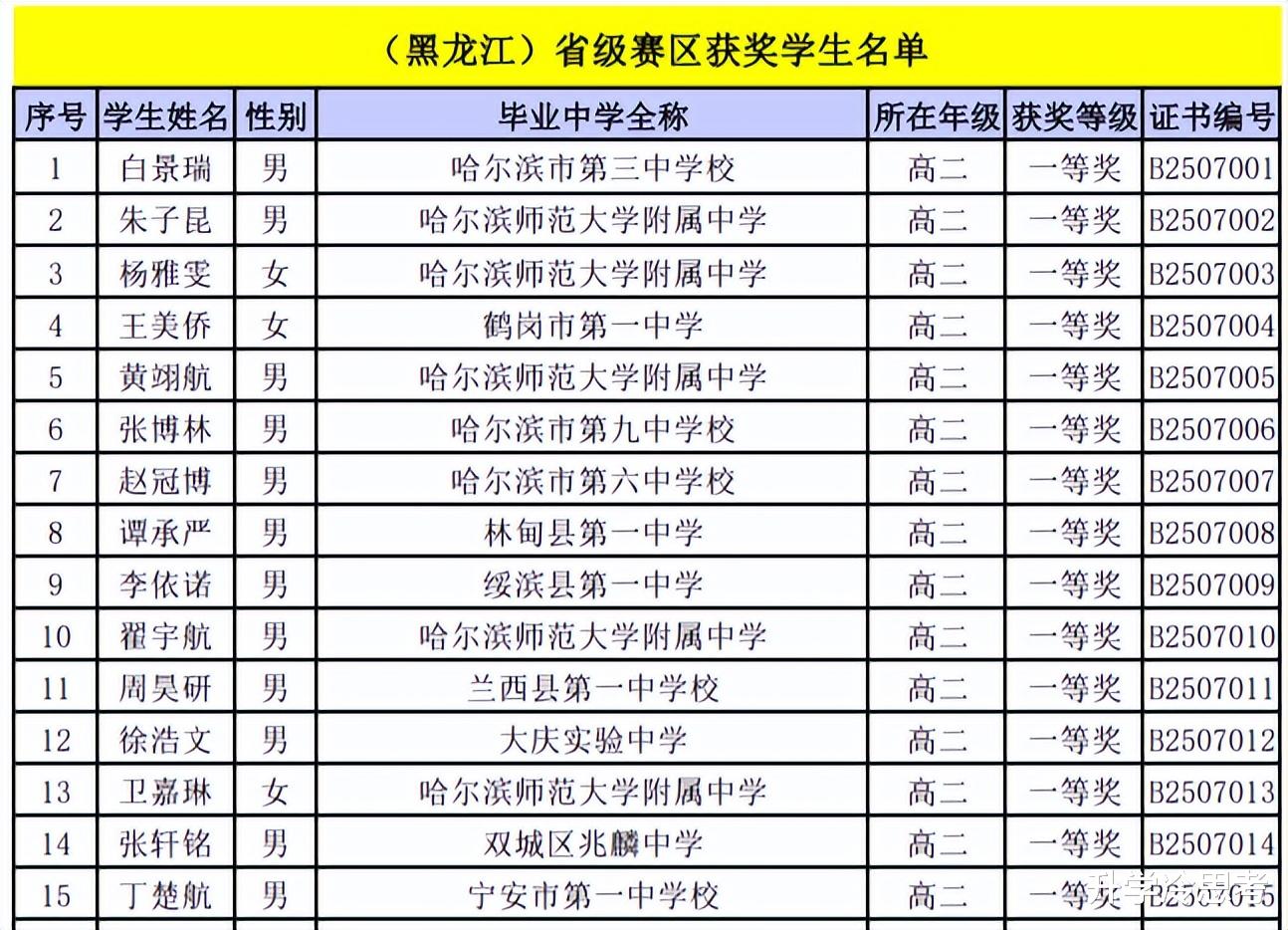 五、2025年黑龙江信息学奥赛省队入选名单来源高中分析获奖名单如图所示:
