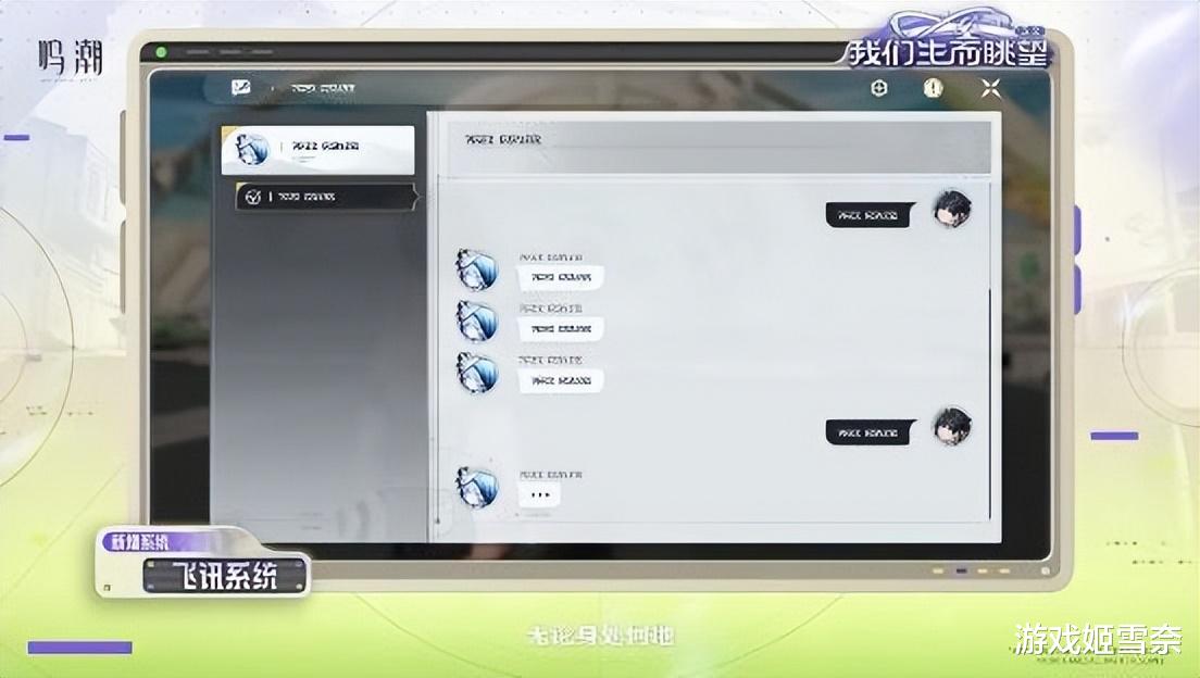 新增聊天,飞讯系统,可以单独跟共鸣者唠嗑,开群组,还有接活动和接任务功能,以前感觉推到新版本就没有旧角色消息的问题即将成为历史了~