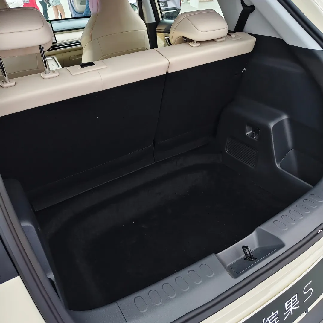 车身尺寸4265×1785×1600mm,轴距2610mm,五门五座布局,空间利用率达84%:后排座间距882mm,175cm的人坐进去膝盖离前排有两拳距离,比同级的吉利星愿更宽松。后备厢常规状态能放两个20寸行李箱,放倒后排座椅后扩展到1450L,婴儿车加折叠轮椅都能装下,周末带娃郊游很够用。车内有25处储物空间,中控台下的双杯托、门板储物格都很顺手,手机还能直接放50W无线充电板上充电。