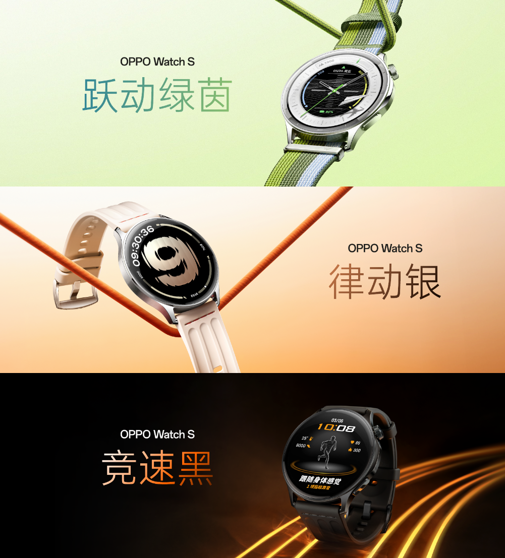 售价方面,OPPO Watch S 跃动绿茵 1499元、律动银 1299 元、竞速黑 1299 元,现已开启全面预定。10月22 日10:00起,将在各大电商平台以及线下 OPPO 门店同步开售,敬请关注!