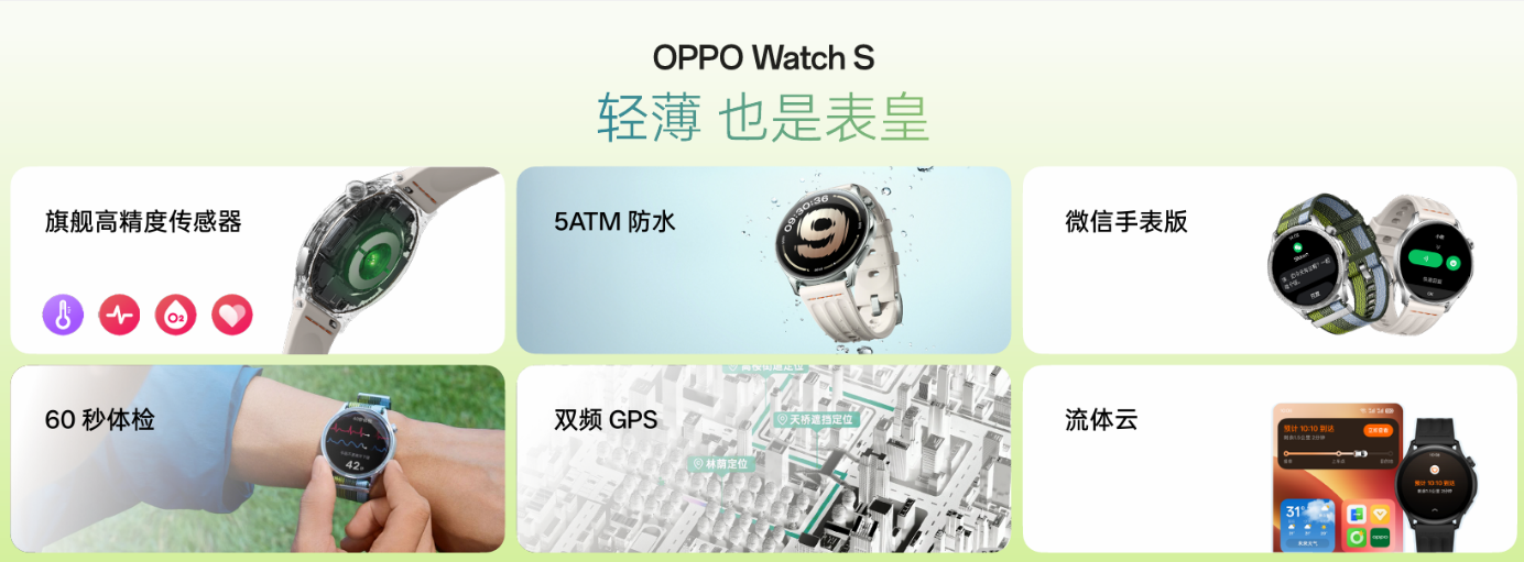 2025 年 10 月 16 日,深圳——OPPO 今日正式发布全新智能手表 OPPO Watch S,这款打破行业智能圆表薄度纪录的“轻薄表皇”,不仅带来前所未有的舒适无感佩戴体验,更集成比肩旗舰的专业健康监测能力、行业首发的 AI 运动教练,以及覆盖全场景的智能体验,以“轻薄且强”的全面实力,成为追求品质生活用户的“年度真香智能手表”之选。