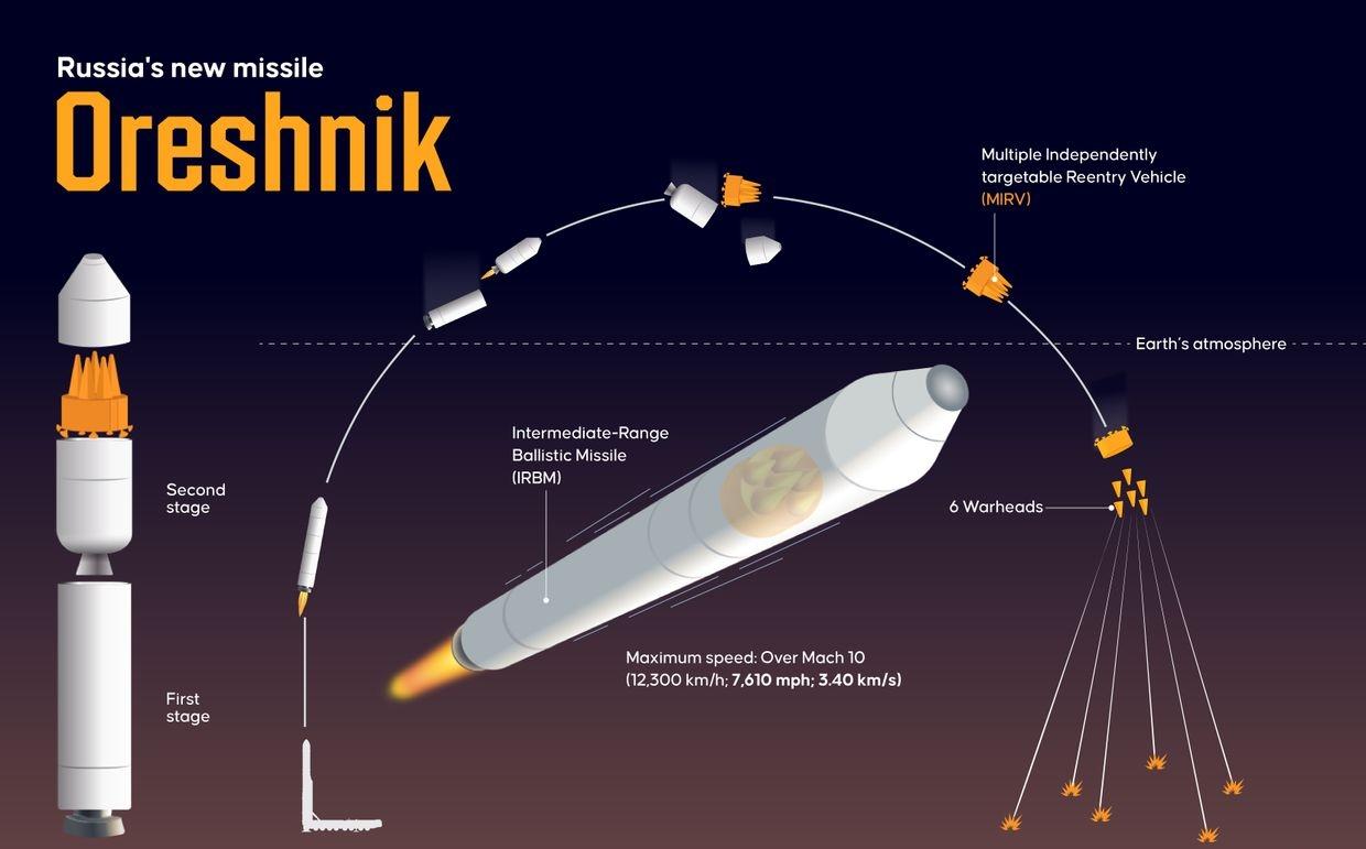 事实上,RS-26“边界”导弹本身已存在多年,它的射程接近6000公里,并且具备搭载核弹头的能力。自2011年首次投入生产以来,这款导弹在2018年因研发重点转向“先锋”高超音速滑翔器而被暂停。如今,俄罗斯重新启用这款导弹并将其重新命名为“榛树”,显然是在当前冲突中试图制造一种新的威慑形象。