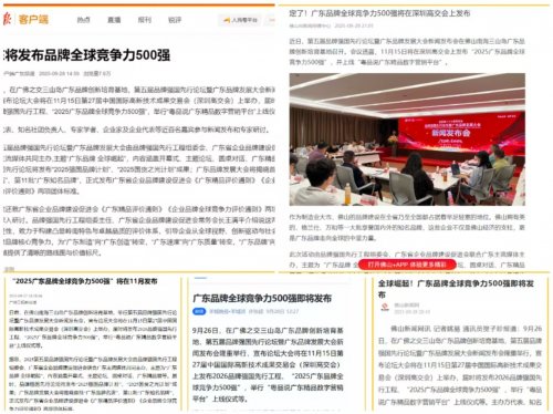 人民日报、广州日报、羊城晚报、佛山日报、珠江时报等媒体客户端、新闻网站专题报道2025广东品牌全球竞争力即将发布