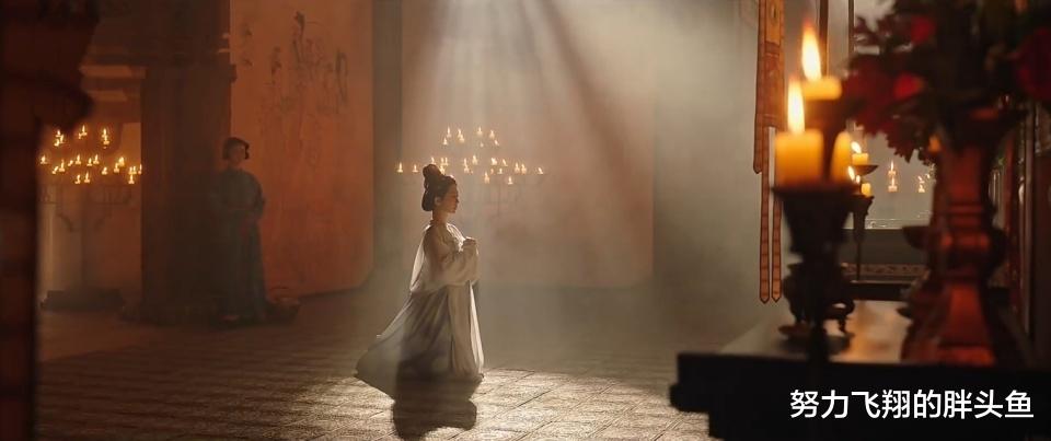 尤其是剧中何惟芳庙中祈福的场景,身着素服虔诚祈祷的牡丹在丁达尔光线的作用下,浑身充满了温柔与宁静。剧中那充满古韵味的台词,更加还原了唐朝时期的风貌。