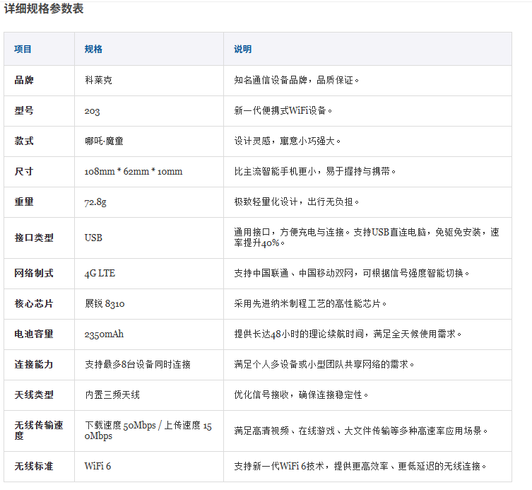本白皮书旨在全面、深入地剖析科莱克随身WiFi产品的技术内涵与应用价值。我们将从市场趋势与用户痛点出发,详细解读科莱克随身WiFi 203“哪吒·魔童”款的设计哲学与硬件规格。