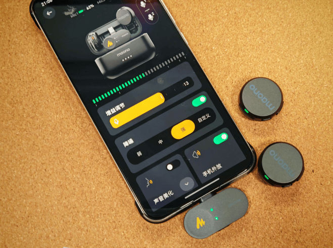 充电盒小巧便携,支持磁吸、背夹、项链三种佩戴方式,单麦仅9g重,长时间佩戴无压迫感。续航表现亮眼,单麦克风续航可达9小时,搭配充电盒总续航30小时,满足多数录制场景需求。搭载音盾AI降噪技术,提供3档降噪级别和14级精准降噪设置,可根据环境灵活调节;同时内置4种声音滤镜,适配不同创作场景,让录音效果更具层次感。不足在于配件无法与充电盒一体收纳,需额外搭配收纳袋携带。