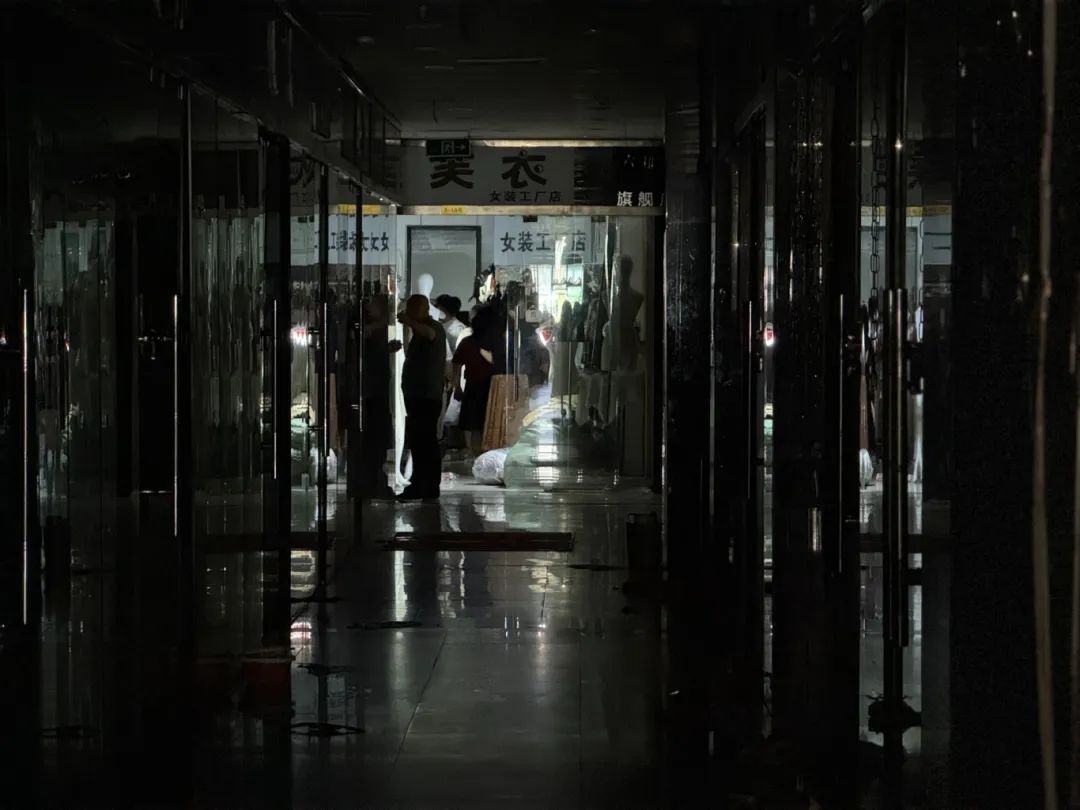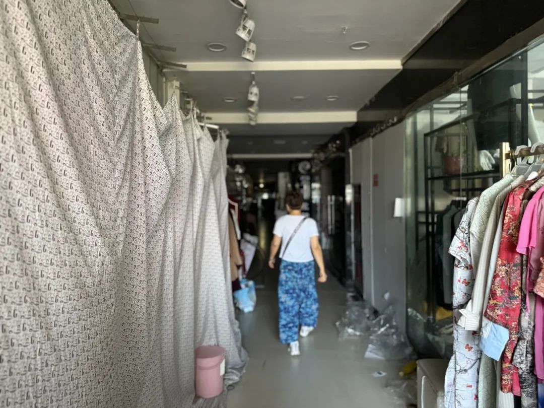 而市场内开放的通道已经很少了,进去之后黑漆漆一片,内里的档口已接近搬空,过道都是货架。除了几家美甲店门还开着,还有人打着手电坐在里面。
