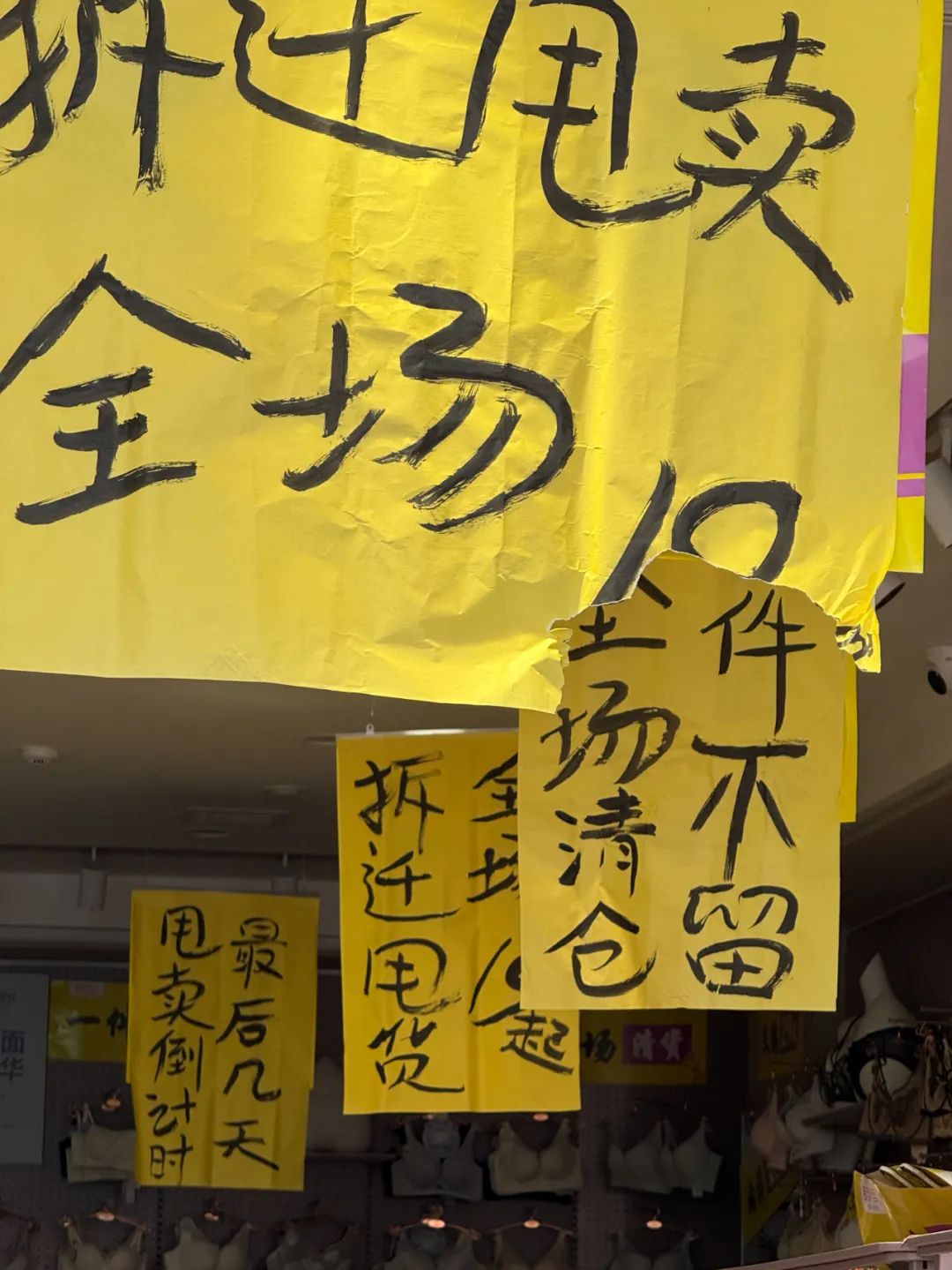 斑驳的玻璃橱窗里,“拆迁”“清仓”“全场大甩卖”“一件不留”的手写大字报已贴得到处都是,店员就在门口手拿货品兜售。每一个没放货架的地方都挤满了抢购特价商品的老街坊。