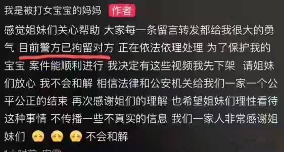 女孩妈妈发声称: 目前警方已拘留对方,正在依法依纪处理。我决定将这些视频先下架,请大家放心,我不会和解!
