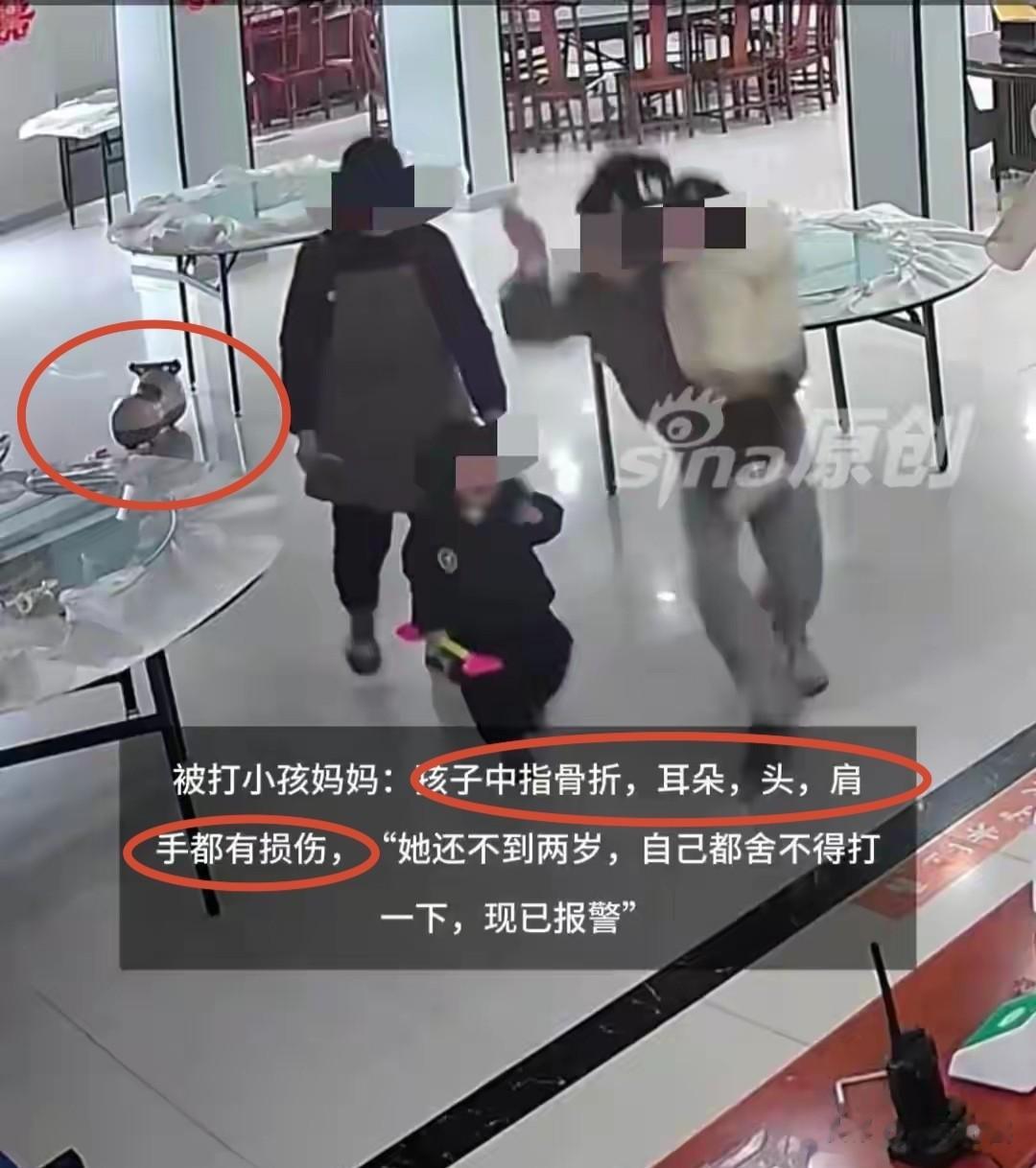 黑衣幼童被女子打的嚎啕大哭,而服务员还跟在孩子后面就这么看着,既不上前护着也不去喊人,要不是店主夫妇在厨房听到孩子哭声跑出来,还不知道自家的孩子被别人打多久,真是越看越让人气着慌。