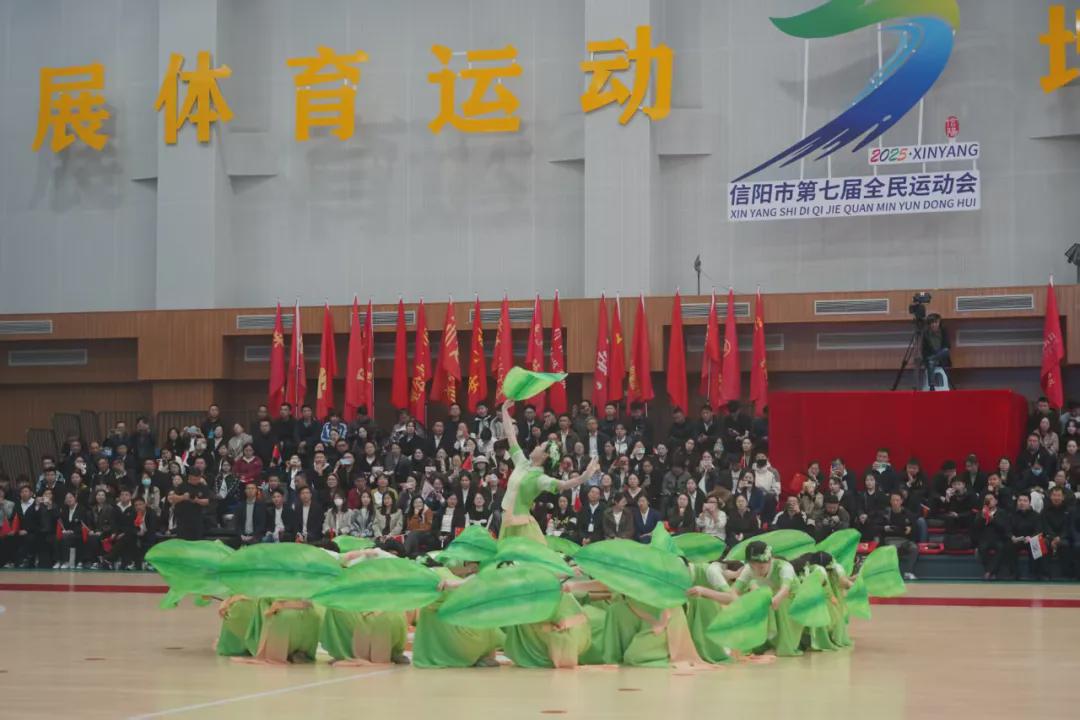 上午9点,当《“申”动不息》的旋律在体育场响起,舞者们的身影时而如大别山的挺拔青松,展现体育的力量;时而如淮河的灵动水波,传递信阳的柔情,将体育的拼搏力量与信阳的人文风情深度交融,为在场观众与组委会呈现了一场美轮美奂的视听盛宴,赢得全场热烈掌声与高度赞誉。