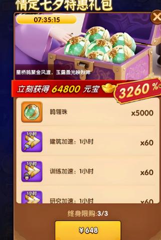 节假日礼包与周年庆礼包堪称全游戏性价比标杆。此类礼包资源投入产出比极高,例如周年庆礼包 100 元可获取的资源价值相当于常规售价 200 元的配置,且常包含限定道具;节假日礼包采用 “基础资源 + 附加福利” 的配置模式,福利覆盖全面。由于其发售周期固定、稀缺性强,建议玩家在发售期间优先选购,避免错过最优入手时机。