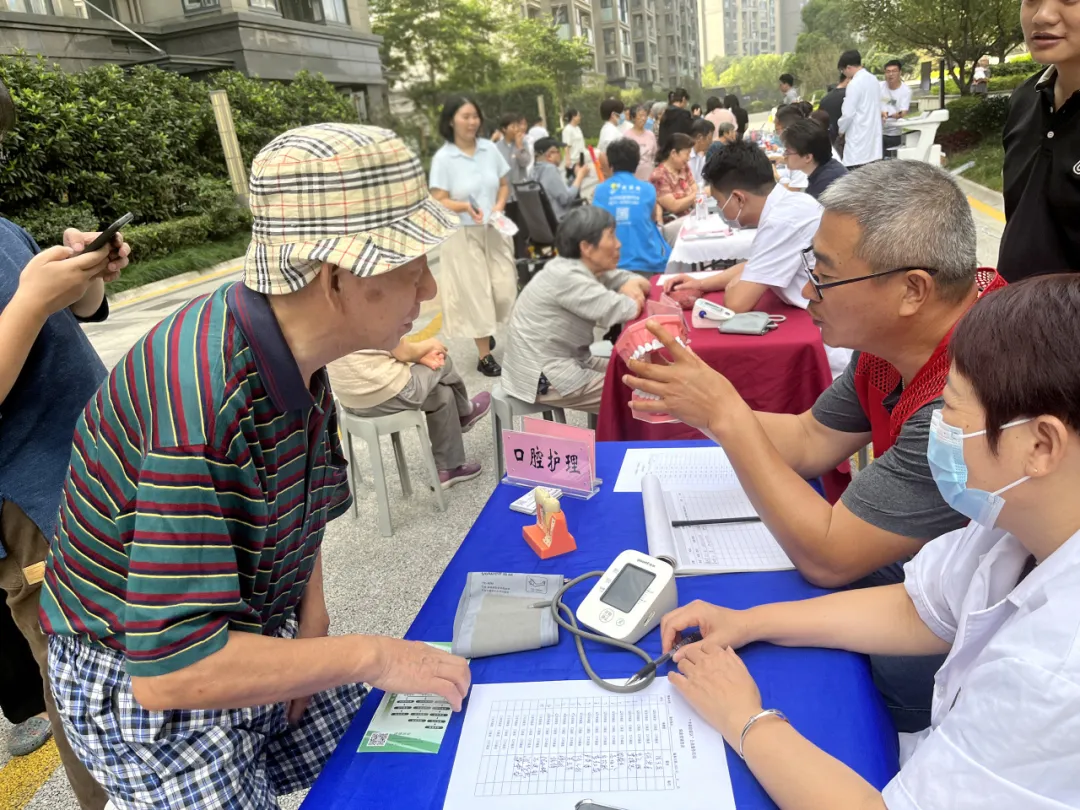 “您的血压略微偏高,最近饮食上要格外注意,尽量做到少盐少油,多吃新鲜蔬果。”在血压测量点,志愿者一边精准记录数据,一边向刚测完血压的赵阿姨仔细叮嘱健康注意事项。