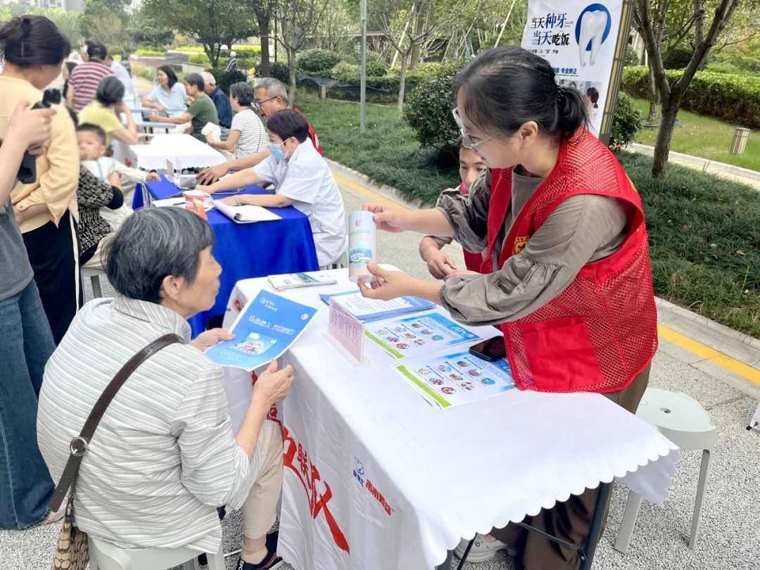 口腔健康区前同样人头攒动,雅莱齿科口腔医院的志愿者们认真为每位居民开展免费口腔检查,针对龋齿、牙周炎等不同口腔问题给出定制化建议,还现场示范并普及正确的刷牙方式与口腔护理知识。