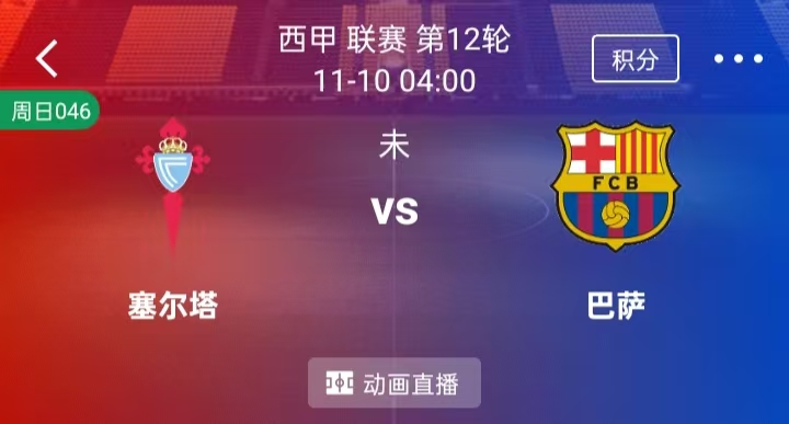 周日 046 西甲:塞尔塔VS巴塞罗那
