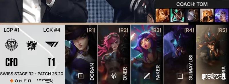 禁用英雄:芸阿娜、沙皇、发条、卡尔玛、蕾欧娜T1 试图封锁 CFO 的开团和 POKE 能力,但忽略了德莱文的换线可能性,导致对线期陷入被动。