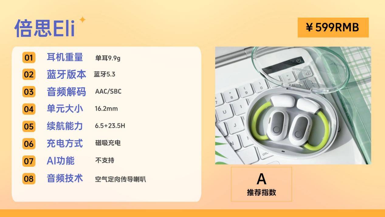 音质表现方面,Eli配备16.2mm大尺寸动圈单元,配合低频增强算法,让低音更具层次感;开放式声学结构则带来了通透自然的声场体验。此外,该耳机提供多达12种EQ音效模式,用户可以根据不同的音乐风格自由切换,打造专属的个性化听感。