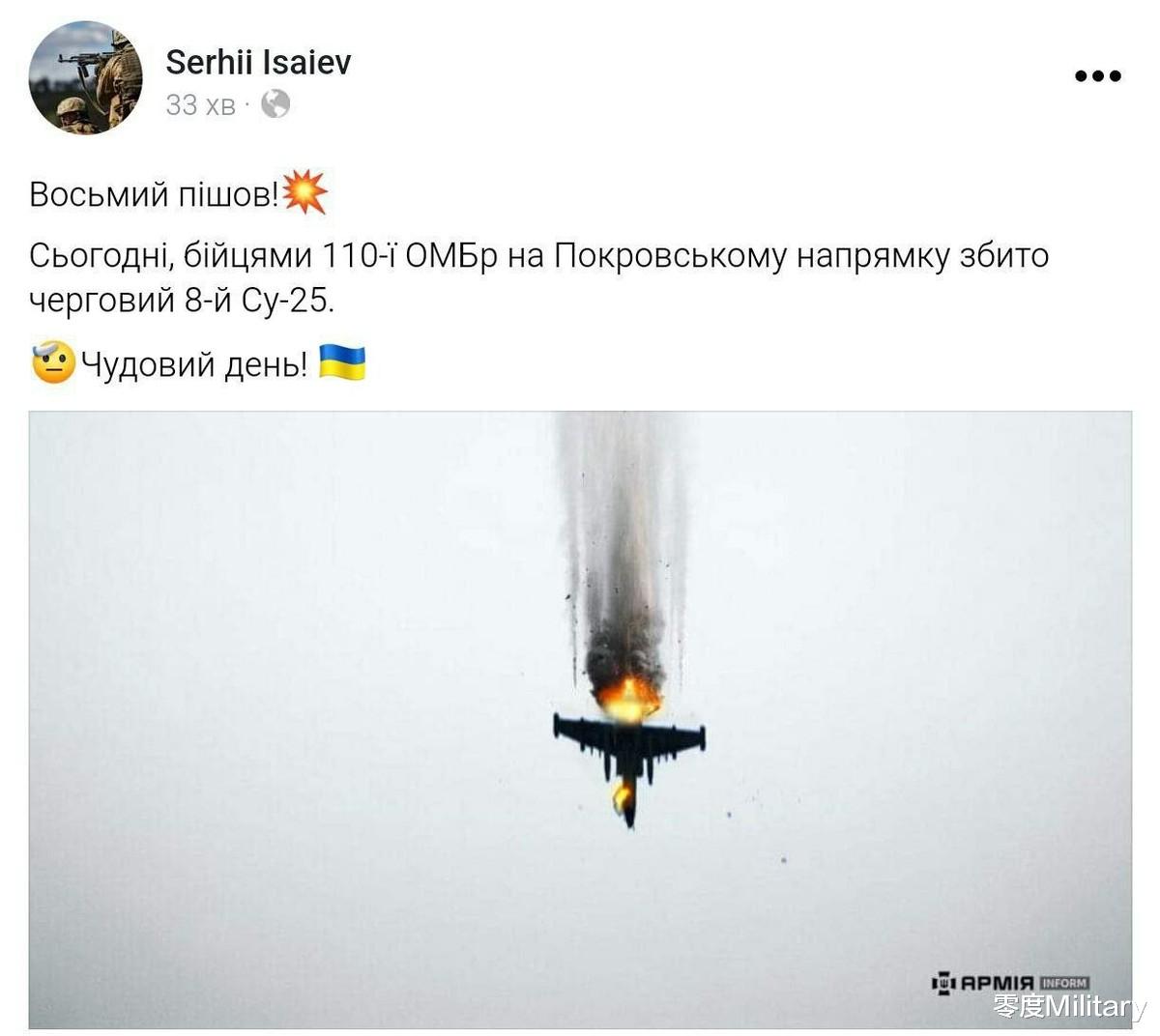 乌克兰武装部队的第110机械化旅声称其在不到一个月的时间内击落了俄罗斯空天军的8架苏-25攻击机,给俄罗斯空中力量造成了“毁灭性”的打击,并为该旅在阿瓦迪夫卡战役中的失败找回了一点颜面。但事实是什么呢?事实就是这些所谓的“击落战果”没有任何实质性的证据,甚至闹出了一些大型笑话。