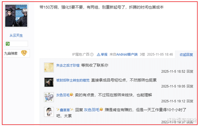 游戏行业如今是赚钱的香饽饽,不仅游戏厂商都在争相竞争用户,游戏内部也有不少玩家为了赚取收益,在搬砖行当上充满了事业心。