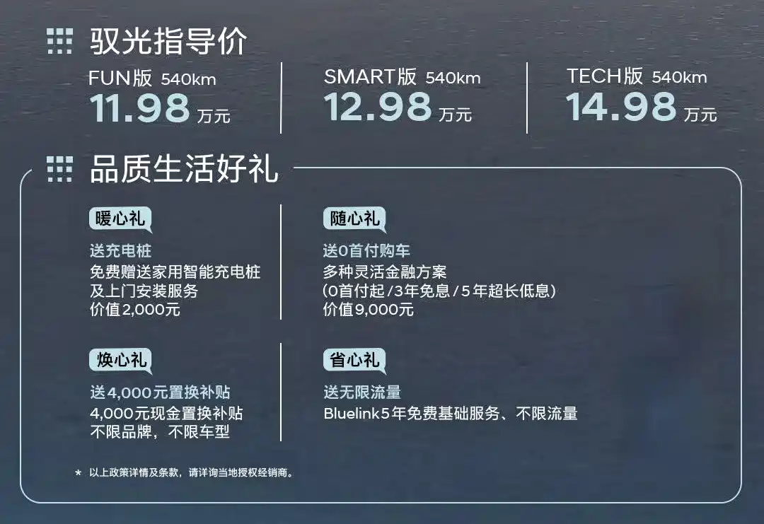 10月29日,北京现代EO 翌欧正式上市,新车共推出三款车型,售价区间为11.98-14.98万元。这个价格之下,它不仅是一台纯电紧凑型SUV,而且还标配了后五连杆悬架、27英寸大屏等配置,性价比可以说非常高。对了,新车的权益也很不错,像充电桩免费赠送,还有不限品牌、车型的置换补贴,具体可以看下图。那么话不多说,一起来看新车。