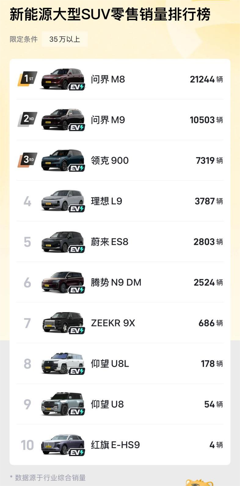 正是在这种“家庭远行”的场景下,领克900展现出大型SUV应有的从容。作为SPA Evo大型电混架构的首款车型,它凭借出色的工程调校与全维安全设计,成为兼顾驾驶乐趣与家庭舒适的典型代表。2025年9月,领克900以7319辆的销量,位列全国35万元以上新能源大型SUV零售榜第三,足以说明市场对其认可。