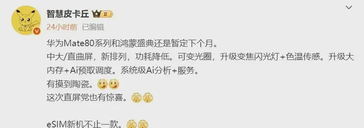 “华为Mate80系列和鸿蒙盛典还是暂定下个月。